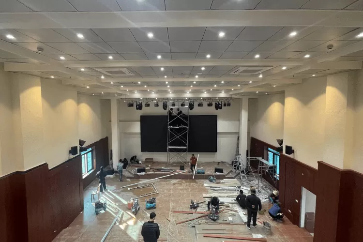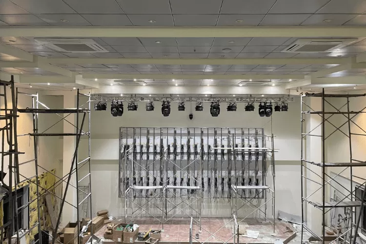 Lắp đặt các đèn chiếu sáng sân khấu, đèn LED, đèn pha, đèn LED RGB để có thể điều chỉnh ánh sáng tùy theo nhu cầu của từng sự kiện, tạo ra không gian sinh động và ấn tượng.