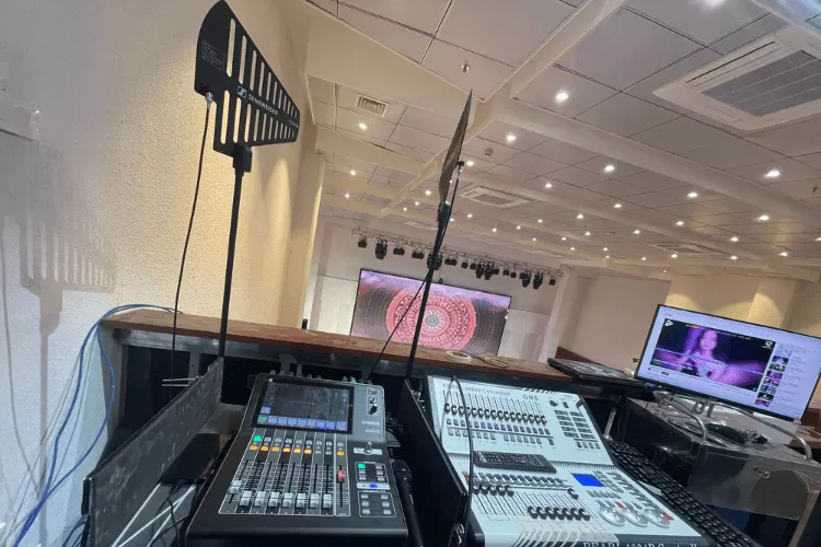 Hệ thống bảng điều khiển và thiết bị kết nối giúp người vận hành dễ dàng kiểm soát và điều chỉnh âm thanh, ánh sáng và màn hình LED trong suốt quá trình sử dụng.