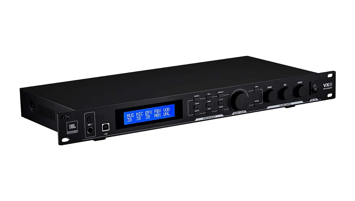 Vang số JBL VX8 sử dụng phần mềm để điều chỉnh sâu các hiệu ứng. Việc thiết lập cấu hình trước và sử dụng nút chọn thiết bị sẽ tiện lợi và nhanh chóng hơn. Bộ trộn có EQ 15 băng tần tích hợp để điều chỉnh mic và EQ 15 băng tần để điều chỉnh nhạc.